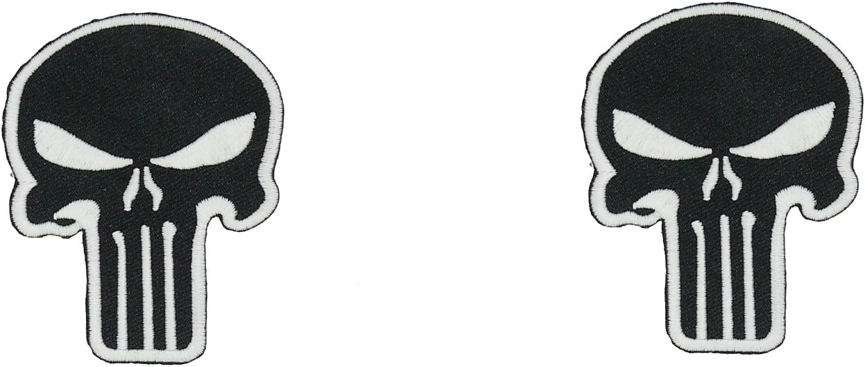 Punisher Skull Patch GLOW IN THE DARK Halloween Costume Jacket Shirt Hat Cap Embroidery Set of 2 Patch Easy Iron/Sew On